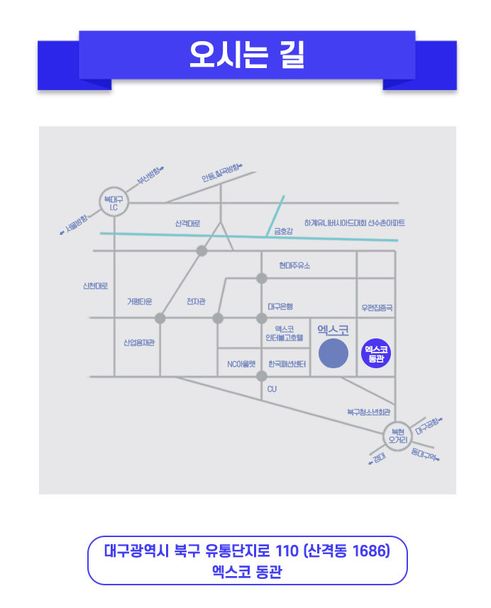 - 지하철: 대구 지하철 2호선 엑스코 동관역 1번 출구 (도보 약 5분)
