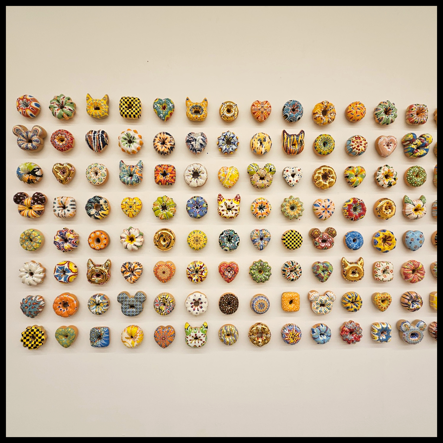 그의 도넛 작품은 단순한 달콤한 디저트의 이미지를 넘어, 사람들의 욕망과 바람을 형상화하고 있습니다.