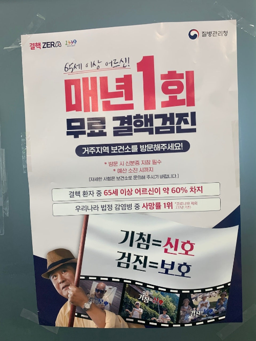 65세 이상 어르신! 대상으로 매년 1회 무료 결핵검진 받으세요!