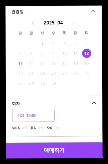 원하는 날짜(4월 12일 또는 4월 13일)와 시간을 빠르게 선택하세요. 경쟁이 치열하니 서둘러야 합니다! - 좌석 선택 (핵심! 좌석 배치도 정복)