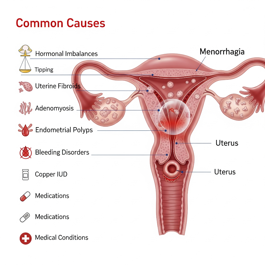 - 에스트로겐 과다: 여성호르몬인 에스트로겐이 상대적으로 많아지면 자궁내막이 두껍게 자라서 생리 때 나오는 혈액 양이 늘어납니다.