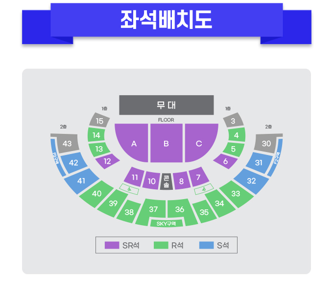 본 공연은 전석 지정석으로 운영되며, 좌석은 1층과 2층으로 나뉘며 FLOOR 구역에는 간이 의자가 설치됩니다.