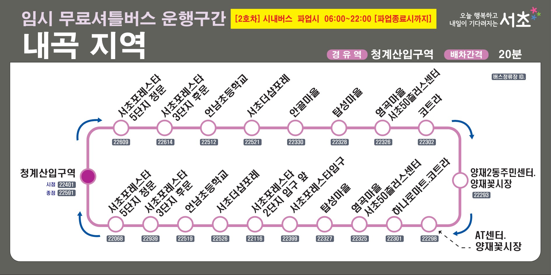 서초구청은 상황 변화에 따라 노선, 정류장, 운행 시간 등을 수시로 조정할 예정이니,