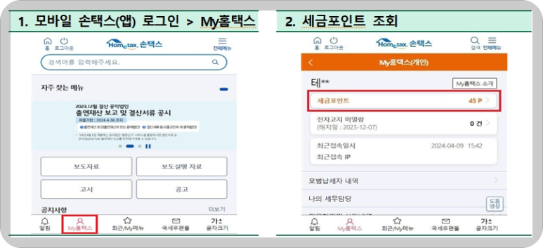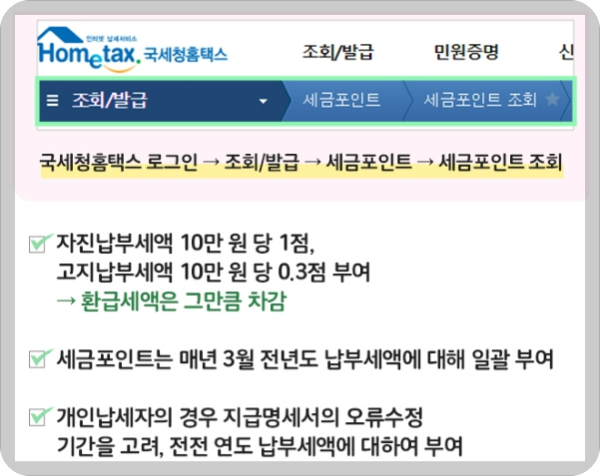 세금포인트 조회 방법